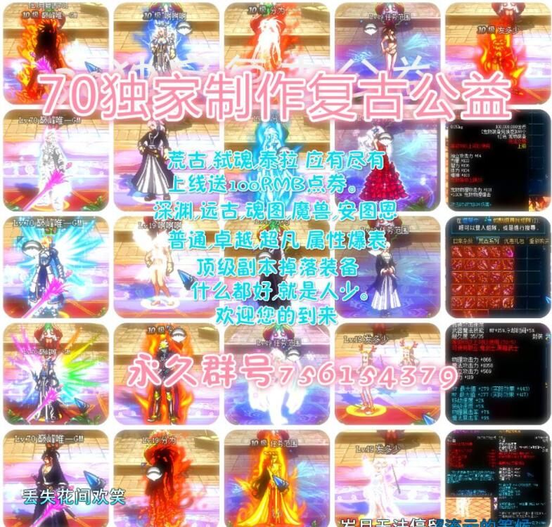 还有很多,我想不起来了,基本上有要求都可以满足,但不要太过分。 喜欢商城的东西可以充值或者抽奖 很便宜,我就要一个广告费还有后期服务器更新的钱。 本服为公益服 很多东西不充值一样可以得到,看你肯不肯努力。 萌新下载好客户端后上游戏建立角色然后私聊老g领取新人福利:直升礼包,清理任务 全图噩梦 左右槽。加一个泰拉武器自选 满级之后穿上60cc和泰拉武器可以去肝深渊了,深渊看技术来,毕竟深渊有难度。 本服进阶装备的材料是蛋糕 需要刷史诗分解 然后兑换,很容易但是需要肝。努力多大,你的进步就有多大。