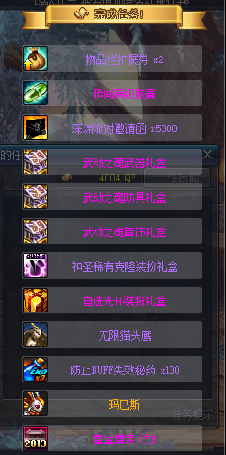 l 萌新福利 1. 在线泡点得点券,可以白嫖商场一切道具,每分钟100点. 2. 上线满级,无限疲劳(赛丽亚买),赛利亚领取新人礼包. l 走出新手村1. 上线点赛丽亚接任务,完成五个新手任务送新手礼包 2. 吃满级胶囊点赛利亚专职-觉醒。点好SP-TP-QP技能 SP和TP不够的赛利亚买技能书。 3. 穿上一套武动之魂,左右槽接任务点赛利亚开启。穿上送的克隆时装和光环 商城-礼包-2011-2013节日套礼包有称号,宝珠,宠物。暗黑城-奥兰 有免费的宠物。新手装齐了 4. 刷齐一套85ss防具-首饰-武器-左右槽,赛利亚商店买红字增幅10即可。一身红字10ss可以开始熟悉其他副本了,恭喜走出新手村。 5. 目前开放的有安图恩 卢克, 后续地图等修改好了会陆续开放........ 每日副本-材料出处用处 深渊-斯曼工业基地产出:75-85史诗 史诗灵魂 魔刹石(安图恩门票) ·克洛诺斯岛产出:80-85史诗(略难新手不建议去)史诗灵魂 数据芯片(卢克门票) 格兰之森山麓-暗黑城左下角 ·牛头怪乐园-每日登陆送5张门票。产出:矛盾 强烈气息 ·金角银角-每日登陆送5张门票。产出:矛盾 强烈气息 ·南部溪谷-每日登陆送5张门票。产出:矛盾 强烈气息 势力礼券(兑换强打书) ·抉择之沼-每日登陆送3张门票。产出:矛盾 强烈气息 +12强化券 +10增幅券 工会基地-工会大厅每日登陆送10张门票。产出:工会硬币 兑换矛盾气息等 时空之门魂图-素喃艾丽丝买门票(找不到就用光环传送过去)。产出:镇魂系列装备镇魂石 灵魂之痕 兑换门票 购买宝珠 异界副本-圣者之鸣号每日任务领取所有地图门票x6 普通远古副本-圣者之鸣号门口艾丽丝购买门票,掉落远古粉,和相对的远古任务粉材料,在副本门口艾丽丝购买,怀旧玩家最爱 暗黑城副本-(暗黑城出门右转往上进入) ·世界树系统-每日登陆送5张门票。产出:小型银色卡片 在NPC不海兑换SAO系列的奖励 ·破碎森林-每日任务灵魂之痕兑换门票x2。产出:史诗灵魂(升级毕业装备) 85-90史诗 ·黎明裂缝-每日任务魔刹石 数据芯片兑换门票x3。产出:史诗灵魂 85-90史诗 异形 碎片-毕业防具90b套设计图购买材料 ·魔界裂缝-每日任务魔刹石 数据芯片兑换门票x3。产出:史诗灵魂 85-90史诗 宇宙之眼-毕业防具90b套升级材料 ·时间广场(魔兽)-每日任务 史诗灵魂(史诗灵魂上面的图掉落)兑换门票x2。产出:90史诗 增幅保护卷 魔兽之殇 -毕业武器圣耀设计图购买材料 月溪镇-素喃巨龙三图-每日登陆送3张门票。完成任务后依次顺序开启下一阶段副本并赠送门票。产出:强烈气息 称号碎片 光环碎片-凯丽商店兑换 安图恩-苍穹贵族号每日任务用【魔刹石】兑换门票x5。完成任务后依次顺序开启下一阶段副本并赠送门票。副本产出:浓缩的魔能石 完成所有每日任务可获得:浓缩的魔能石 灵魂碎片 神经细胞 安图恩讨伐罐子(材料用于制作安徒恩系列装备和90A套) 卢克-克洛诺斯岛每日任务用【魔刹石】【数据芯片】兑换门票x5。完成任务后依次顺序开启下一阶段副本并赠送门票。副本产出:光之根源 暗之根源 完成所有每日任务可获得:光之根源 暗之根源 魔岩石(用于之作海博伦以及90B套圣耀武器) ll 装备升级防具 ·75-85史诗套 发电站和寂静城深渊出 ·90史诗 黎明裂缝 魔界裂缝 时间广场(魔兽) 破碎森林掉落 ·90A套 安图恩门口NPC90史诗防具自选礼盒 ·90B套 卢克门口NPC波澜万丈的艾丽卡用90A和设计图升级 卢克地图 也会直接掉落90B套